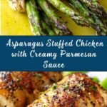 This Asparagus Stuffed Chicken recipe features tender chicken breasts stuffed with provolone cheese and fresh asparagus, baked to perfection and served with a creamy artichoke and spinach dip sauce. It’s a flavorful, elegant dish that’s perfect for a family dinner or special occasion.