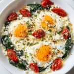 This delightful Baked Feta Eggs with Spinach and Tomatoes recipe combines creamy feta cheese, fresh spinach, juicy tomatoes, and perfectly baked eggs in a flavorful Mediterranean-inspired dish. Ideal for a nutritious breakfast or brunch, it balances tangy, savory, and slightly spicy flavors baked to perfection in the oven.