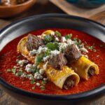 - Bake: Spoon extra birria sauce over the rolled enchiladas, sprinkle with more cheese, and bake in the preheated oven for 15–20 minutes until bubbly and golden.