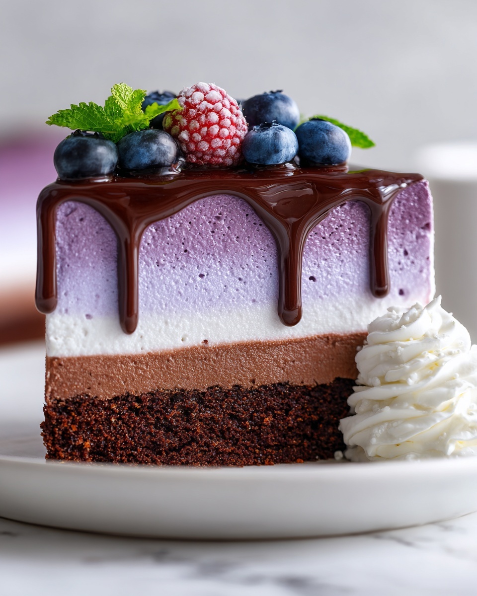 This Blueberry Velvet Cheesecake combines a buttery graham cracker crust with a smooth, creamy cream cheese filling infused with fresh blueberry puree for a delicate purple hue and a luscious velvet texture. Topped with a homemade blueberry syrup and optional whipped cream, this American classic dessert is the perfect blend of fruity freshness and rich indulgence, baked in a water bath for a silky, crack-free finish.