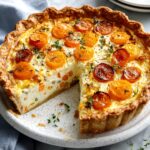 This Carrot Quiche with Cheddar and Roasted Onions is a savory and comforting dish featuring a flaky homemade crust filled with tender roasted carrots and onions, sharp cheddar cheese, and a rich custard made from eggs, cream, and milk. Perfect for brunch, lunch, or a light dinner, this quiche combines a slightly sweet vegetable filling with the savory depth of cheddar and herbs for a deliciously balanced meal.