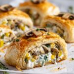 These Cheesy Baked Vegetable Rolls are a delightful appetizer or snack featuring a blend of sautéed spinach, mushrooms, bell peppers, and red onion combined with creamy mozzarella and cream cheese, all wrapped in flaky puff pastry and baked to golden perfection.