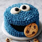 Hosting a kids’ party or just want to wow your loved ones? Serve this cake on a bright blue or white cake stand to mimic Cookie Monster’s world. You can even sprinkle extra mini chocolate chips or cookie crumbs on the plate for extra fun. For an interactive twist, set out mini cookies so guests can “feed” Cookie Monster as they enjoy the cake!