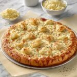 The creamy garlic white pizza sauce acts as an inviting base, so when it comes to garnishes, think fresh and vibrant. Try sprinkling freshly chopped basil or parsley for a bright herbal touch. A drizzle of extra virgin olive oil or a few flakes of crushed red pepper can add an exciting finish and hint of heat, perfectly balancing the sauce’s richness.