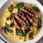 This Creamy Gorgonzola Steak Pasta is a luxurious and satisfying dish combining tender seared steak cubes with a rich, creamy sauce made from heavy cream, Parmesan, and tangy Gorgonzola. Tossed with fettuccine, fresh spinach, and sun-dried tomatoes, and finished with a drizzle of balsamic glaze, this recipe delivers a perfect balance of flavors and textures in just 35 minutes.