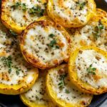 These Crispy Baked Cheesy Squash Rounds are a delicious and healthy appetizer or side dish, featuring tender yellow squash slices topped with melted mozzarella and Parmesan cheese, baked to golden perfection with a crispy finish. Simple to prepare and perfect for a quick snack or a flavorful addition to any meal.