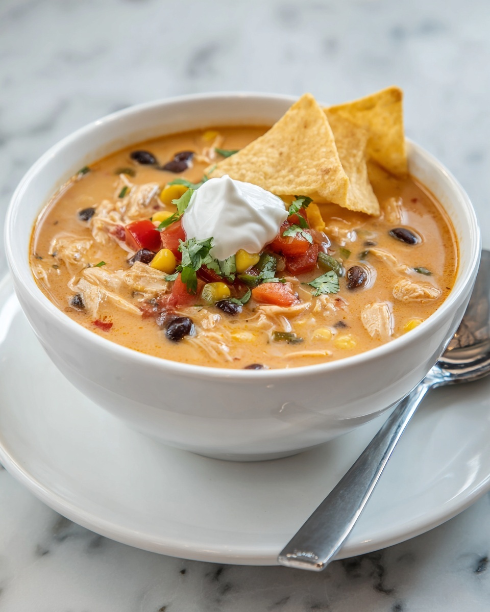 Enhance your bowl by scattering shredded cheese over the hot soup so it melts into gooey goodness. Add cool dollops of sour cream for tang and creaminess, sprinkle fresh cilantro for a burst of bright herbal flavor, and don’t forget crunchy tortilla chips that add fun texture. Sliced avocado adds smoothness and richness that beautifully rounds out the dish.