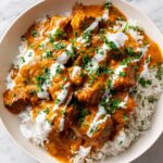 - Serve: Spoon the cooked basmati rice onto plates or bowls, ladle the butter chicken over the rice, and garnish with freshly chopped cilantro for a bright, fresh finish. Serve immediately while hot.