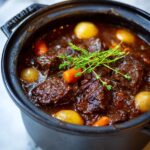 If you want to impress even more, consider serving this dish in individual mini Dutch ovens or rustic ceramic bowls. Layer mashed potatoes underneath and ladle the beef stew on top for a shepherd’s pie twist. You can also serve it over polenta or creamy grits for a different but equally delicious experience. The French Beef Bourguignon Recipe adapts beautifully to your personal flair!