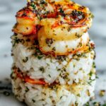 - Garnish and Serve: Sprinkle the chopped fresh parsley over the shrimp and rice stacks. Serve immediately with lemon wedges on the side to add a fresh burst of citrus flavor.