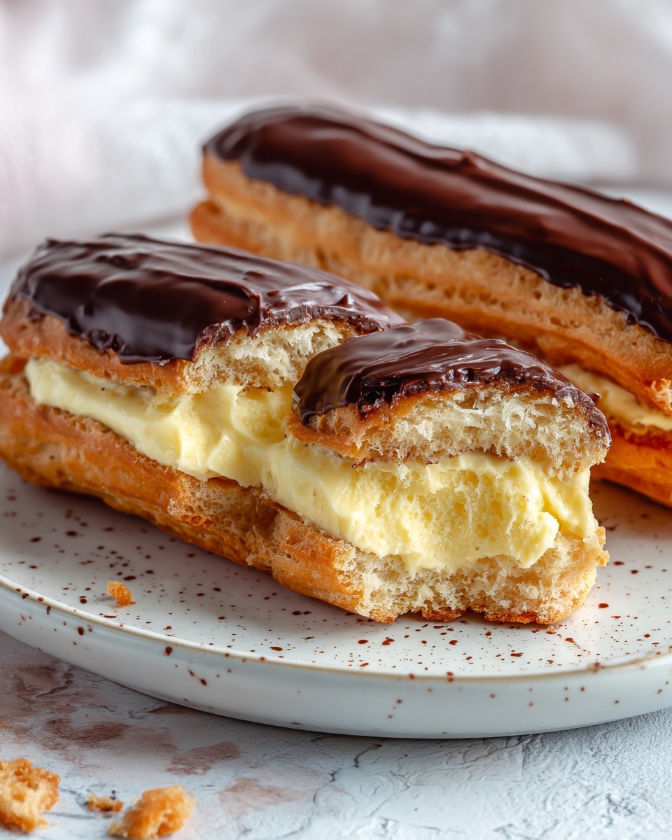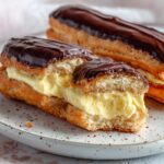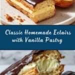 This Homemade Eclairs Recipe features delicate choux pastry filled with rich, creamy vanilla pastry cream and topped with a luscious chocolate ganache. Perfect for a special dessert or elegant treat, these classic French pastries combine crispy exterior shells with smooth, indulgent fillings for a truly delightful experience.
