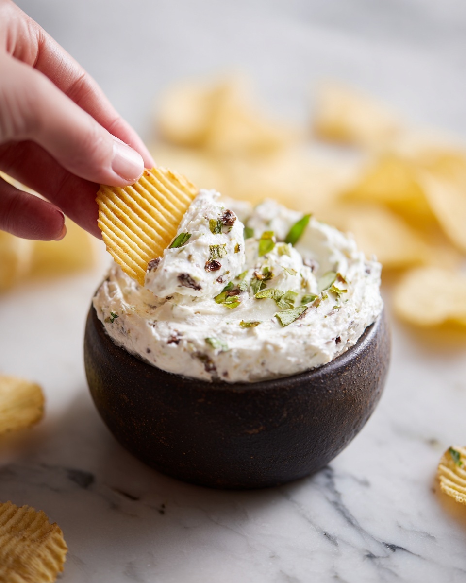 - Chill and serve: Cover the bowl and refrigerate for at least 1 hour to allow the flavors to meld. Before serving, stir the dip and sprinkle with chopped fresh chives if desired.