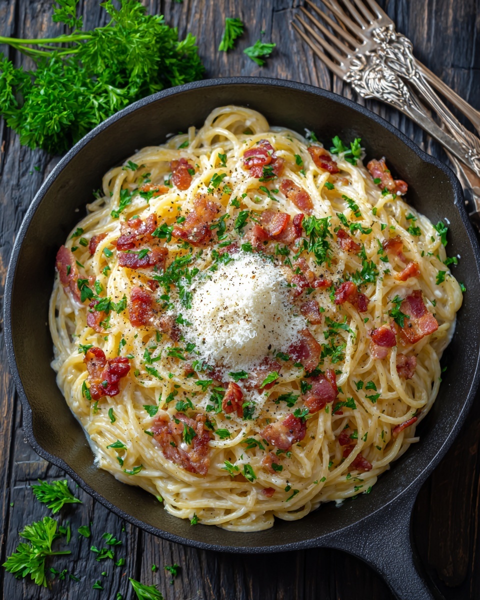 To experience Italian Spaghetti Carbonara: The Authentic Recipe You Need Recipe in full glory, plate it up immediately. Top generously with extra Pecorino Romano and freshly cracked black pepper to make every bite full-bodied and perfectly seasoned. Carbonara waits for no one, so dive right in!