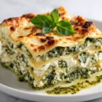 This Lasagna al Pesto recipe combines the vibrant flavors of fresh basil pesto with creamy béchamel sauce layered between tender lasagna noodles and melted cheeses. Perfectly baked to a golden, bubbly finish, it’s a delightful twist on traditional lasagna that serves six people and offers a rich, comforting Italian dish with a fresh herbal kick.