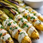 As soon as your corn is off the grill, generously brush each ear with the flavorful creamy sauce while it’s still warm—this helps the sauce soak in slightly and cling well. Then, sprinkle liberally with crumbled cotija cheese and chopped cilantro. The salty, crumbly cheese adds an extra dimension of flavor, and the cilantro brings a fresh, vibrant touch that brightens every bite.