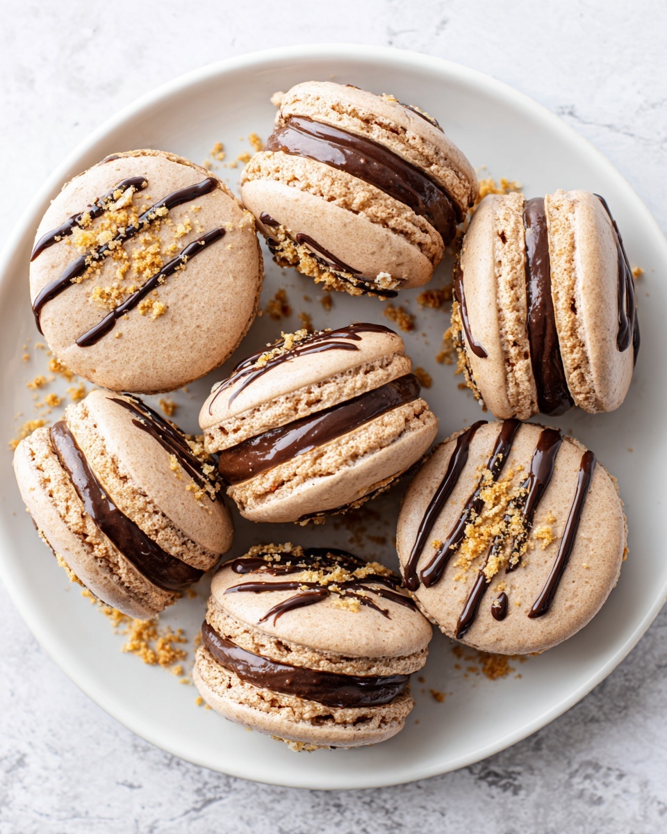 A sprinkle of crushed hazelnuts or a light dusting of cocoa powder can elevate your Nutella Drizzle Macaron Recipe by adding texture and enhancing the chocolate-hazelnut flavor profile. Fresh berries can also provide a fresh contrast to the sweet richness.