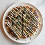 Top your pancakes with a sprinkle of toasted sesame seeds, bonito flakes, or sliced green onions for extra texture and flavor boost. These garnishes not only elevate the taste but also add an authentic flair that captures the essence of Japanese street food culture.