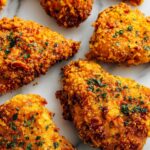 Simple garnishes like freshly chopped parsley or a squeeze of lemon juice really brighten up the dish and add a pop of color. A sprinkle of flaky sea salt right out of the oven can also enhance the crispy coating’s savory flavors and give each bite even more texture.