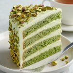 Slice your Pistachio Cake Recipe into wedges and serve. It’s a delightful treat perfect for sharing or savoring solo with a cup of tea or coffee.