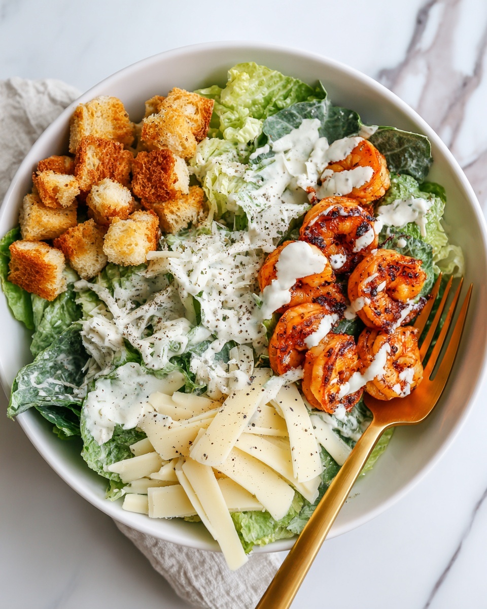 • Homemade or store-bought croutons: Add that essential crunch for contrast with the tender shrimp and crisp greens.