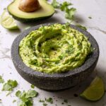 Finally, garnish with some extra cilantro leaves for a pretty presentation and serve immediately with chips, crisp veggies, or as a topping on tacos or grilled meats. Freshness is key for enjoying this guacamole at its best.