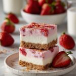 Delicious and creamy Strawberry Cheesecake Bars featuring a buttery graham cracker crust, smooth cream cheese filling, and a fresh strawberry topping. Perfect for summer gatherings or anytime you crave a fruity, decadent dessert.