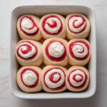 Wrap any leftover strawberry cheesecake cinnamon rolls tightly in plastic wrap or store them in an airtight container. They’ll stay fresh at room temperature for 1 to 2 days or refrigerated for up to 5 days while maintaining their tender texture.