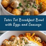A hearty and customizable Tater Tot Breakfast Bowl featuring crispy baked tater tots, fluffy scrambled eggs, savory sausage or bacon, sautéed veggies, and melted cheddar cheese. Perfect for a satisfying breakfast or brunch that’s easy to prepare and full of flavor.