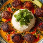 - Serve: Dish out the meatballs and curry sauce over cooked rice. Garnish with fresh cilantro leaves and lime wedges for an added burst of flavor and brightness.