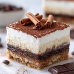 Dust the assembled dessert generously with cocoa powder—this final touch adds a beautiful velvety chocolate bitterness that balances the sweetness. For extra indulgence and visual appeal, sprinkle with chocolate shavings or grated chocolate. Your tiramisu cheesecake is now ready to slice, serve, and enjoy chilled.