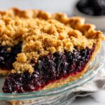 - Bake: Place the assembled pie on a foil-lined baking sheet to catch any drips. Bake for 70–75 minutes until the streusel is golden brown and the filling is bubbling and thickened. If the crust’s edges brown too quickly, cover them with foil or a pie crust shield halfway through baking.