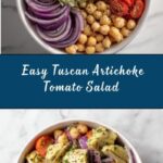 Serve the Tuscan Artichoke Tomato Salad Recipe in individual glass jars or pretty bowls for a picnic or party, or pile it high on a rustic wooden board surrounded by olives, sliced cheeses, and artisan crackers. This makes the dish as visually stunning as it is delicious, perfect for sharing with friends and family.