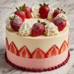 This Vanilla Strawberry Ombre Cake is a visually stunning and delicious layered dessert featuring soft vanilla sponge cakes tinted in varying shades of pink to create an elegant ombre effect. The cake layers are filled and frosted with a silky smooth vanilla buttercream tinted in matching pink hues. Topped with fresh strawberries, edible gold sprinkles, and a light dusting of powdered sugar, this cake is perfect for celebrations and will impress with both taste and presentation.