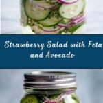 In a large salad bowl, toss together the mixed greens, cherry tomatoes, cucumber, red onion, strawberries, avocado, crumbled feta cheese, and your choice of roasted sunflower seeds or chopped walnuts. This colorful mix creates a lovely contrast of flavors and textures that make the salad so inviting.